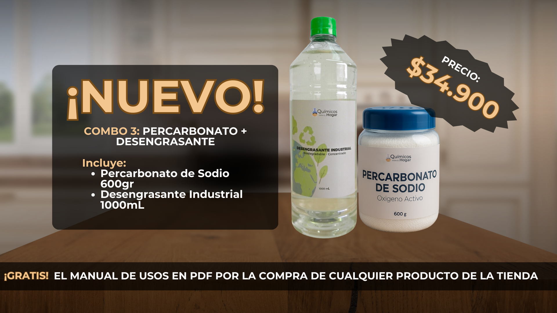 Combo 3 percarbonato de sodio 600g + desengrasante industrial 1000ml